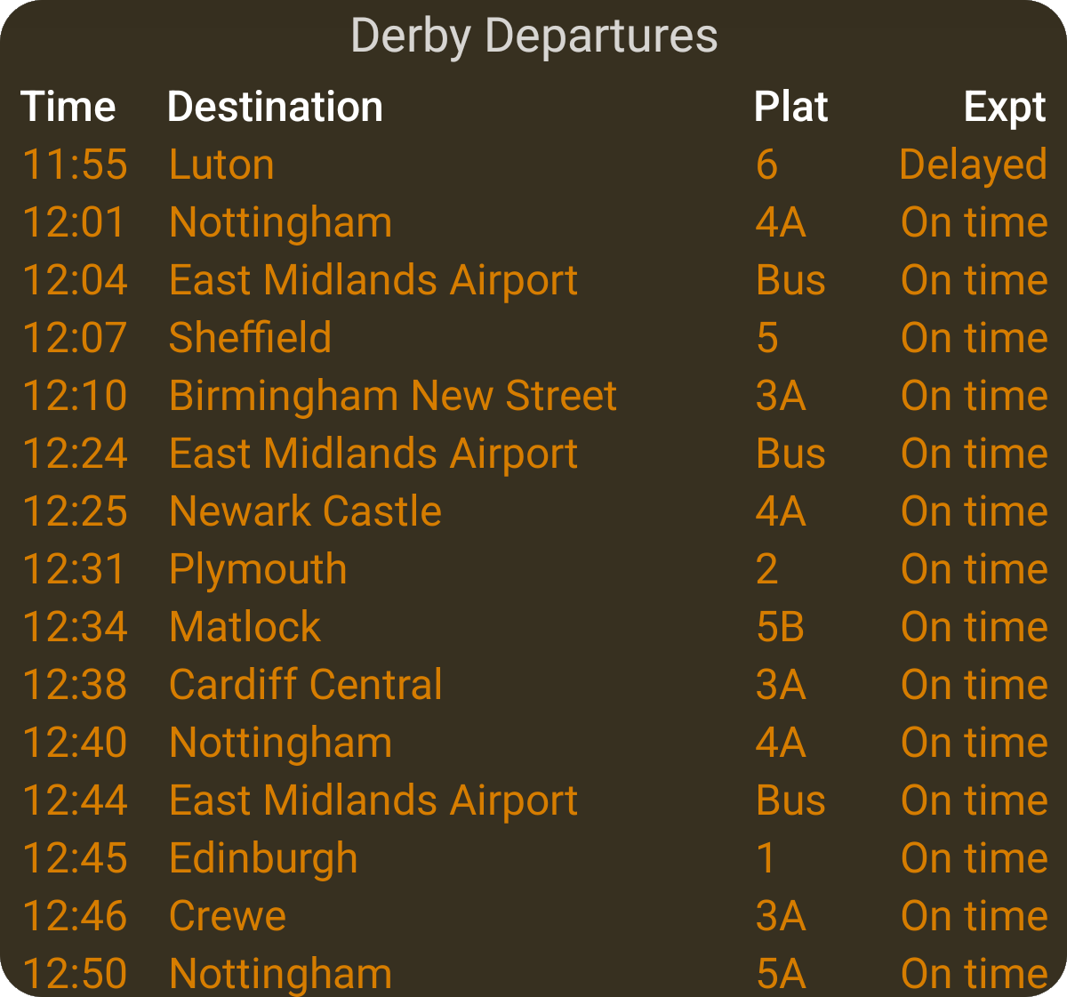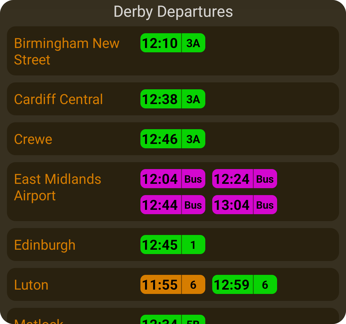 - The destination filter appears at the top if one is set (set using the NexTrain phone app)